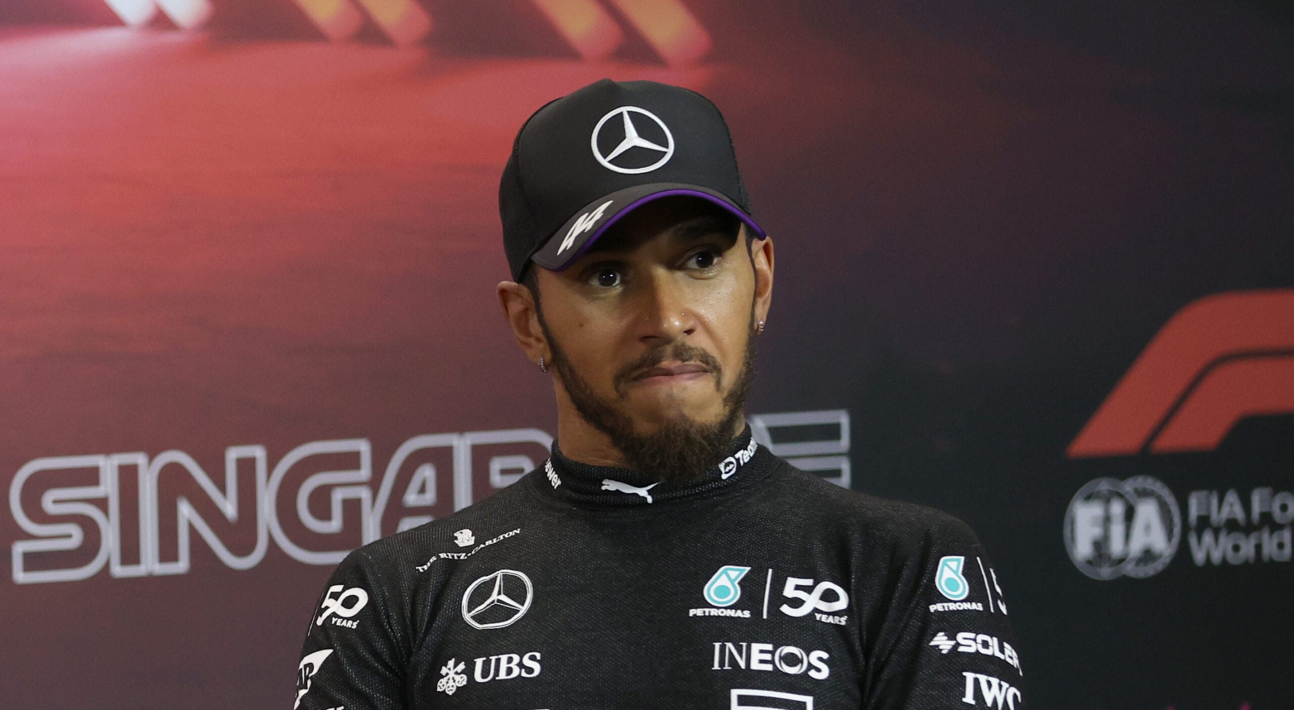 «No fue divertido», dijo Lewis Hamilton sobre el GP de Singapur. «Antes de la carrera, el equipo ya había dicho que querían aplicar dos estrategias diferentes. Me sorprendió un poco; normalmente solo dividimos nuestras estrategias si alguien se clasifica fuera del top diez. Insistí tantas veces como pude en que quería empezar con los medios, pero el equipo seguía diciendo que tenía que empezar con el rojo. Estaba tan enfadado. De hecho, ya estaba frustrado desde ese momento.»
